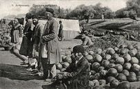 Какъ только приготовленія были завершены, обыватели, прежде того стѣсненные за спеціальными загородками, были выпущены на площадь и жадно набросились на арбузы и дыни, которыя безплатно раздавались всѣмъ желающимъ членами Союза Михаила Архангела и другихъ патріотическихъ объединеній. У присутствовавшего при семъ корреспондента "Улюлюйскихъ Вѣдомостей" возникли уже было опасенія, что сіе буйство восторженныхъ обывателей въ память о визите Государя и съ подкрѣпленіемъ даровыми арбузами можетъ вызвать даже и человѣческія жертвы среди Улюлюйцевъ, но въ ту же минуту предусмотрительно приготовленные Казаки были вызваны изъ подворотенъ, где прятались для крайняго случая, и своіми нагайками привѣли толпу въ чувство и въ состояніе любви къ Государю.
